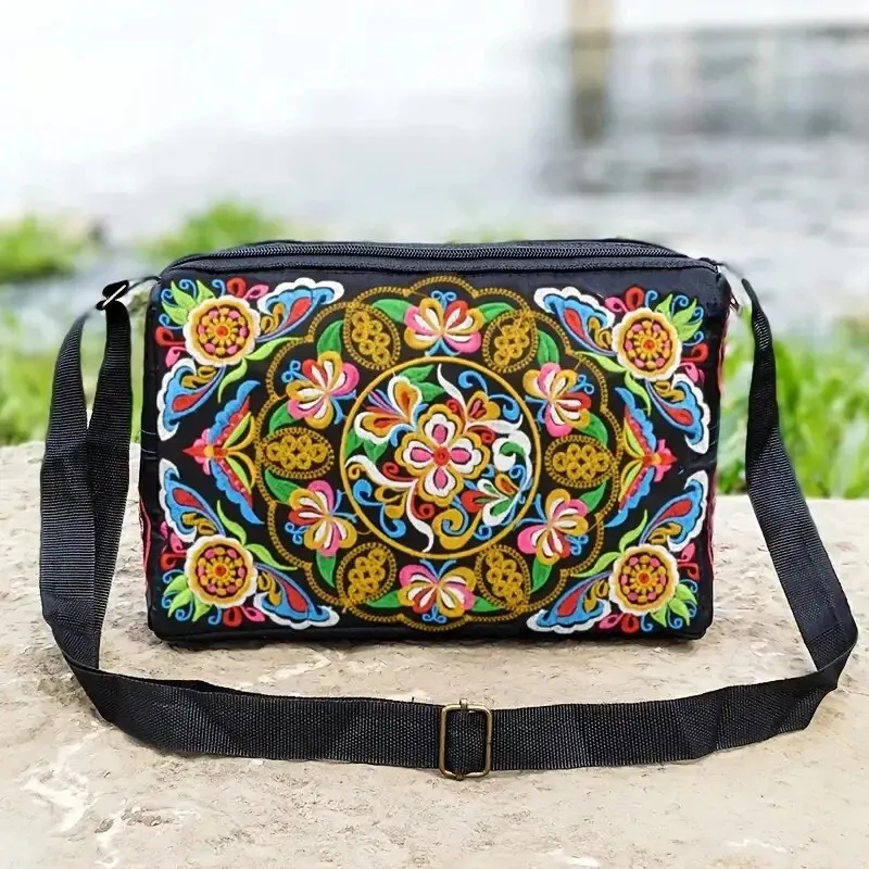 Com um design moderno a decoração de flores bordadas da bolsa a torna um acessório elegante que complementa qualquer roupa.